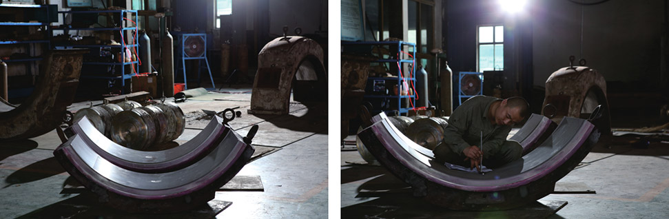 巴氏合金軸瓦、密封瓦局部補焊后刮研,達到原始設計尺寸。